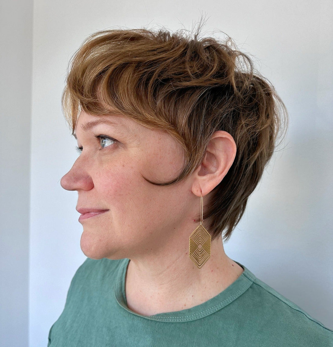This soft shag pixie is cut with natural movement in mind. The layers are strategically broken up to encourage waves and lift at the roots. The earthy brunette tone keeps it grounded, while the side volume adds depth without overwhelming the shape.