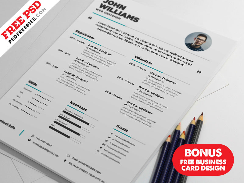 Featuring a free cv resume and business card design templates in photoshop (psd) format. PSDfreebies has created this amazing and beautiful free template. Easily amaze your audience with this beautiful template and make yourself pop up from the crowd.